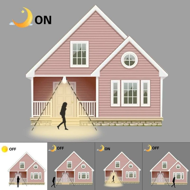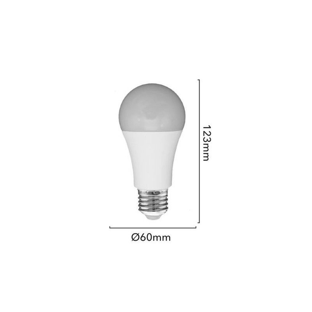 Ampoule E27 de 7W, dotée d'un capteur de mouvement doublé d'un capteur de luminosité : elle s'allume automatiquement lorsqu'un mouvement est détecté, dès lors que la luminosité ambiante est inférieure à 20 lux. Le champ de détection du capteur est de 6 mètres. Notre ampoule 7W avec capteur de mouvement s'éteint après 60 secondes d'inactivité. Son angle d'ouverture est de 180 degrés. Elle diffuse une lumière nette et homogène en blanc neutre. Indice de protection étanche IP20, pour usage intérieur ou dans un luminaire d'extérieur étanche.
